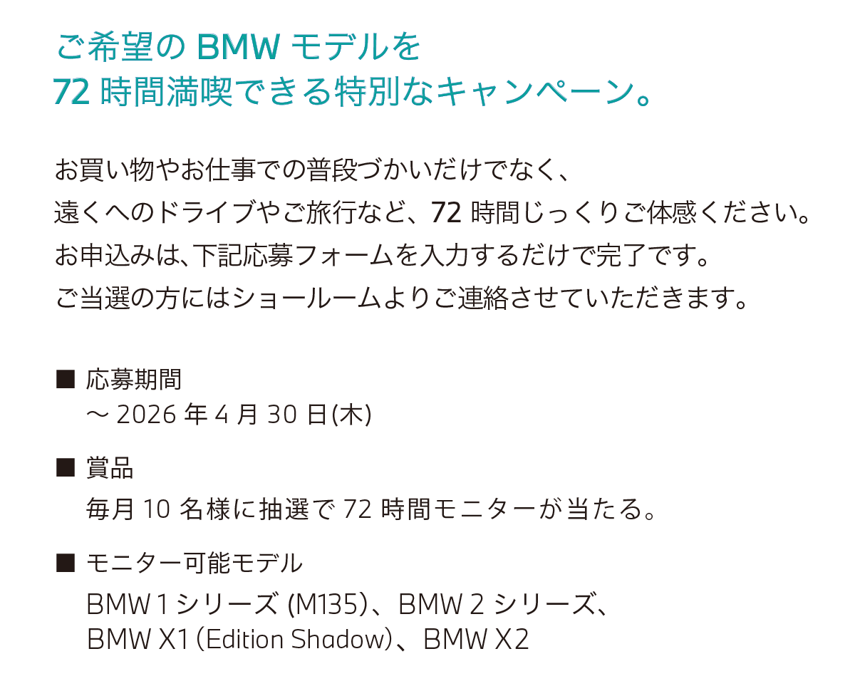 BMW 西宮支店 〒663-8243 兵庫県西宮市津門大箇町4−3TEL : 0798-37-3525営業時間 : 10:00~18:00定休日 : 毎週 月曜日、火曜日※祝日及び各月の末日は営業いたします。